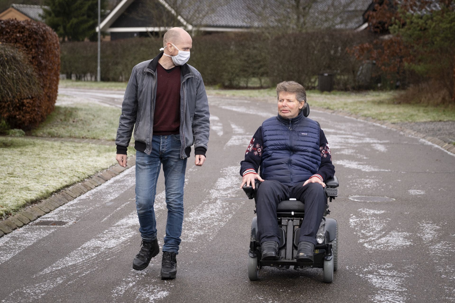Men det kommer til at ændre sig. Startskuddet bliver et rutinemøde med en ekstern konsulent fra Skanderborg Kommune, som han mødes med i sommeren 2020. Hun noterer sig, at Thomas en gang imellem kan være alene en time eller to, og at han også selv kan køre rundt i sin joystick-styrede specialbil.