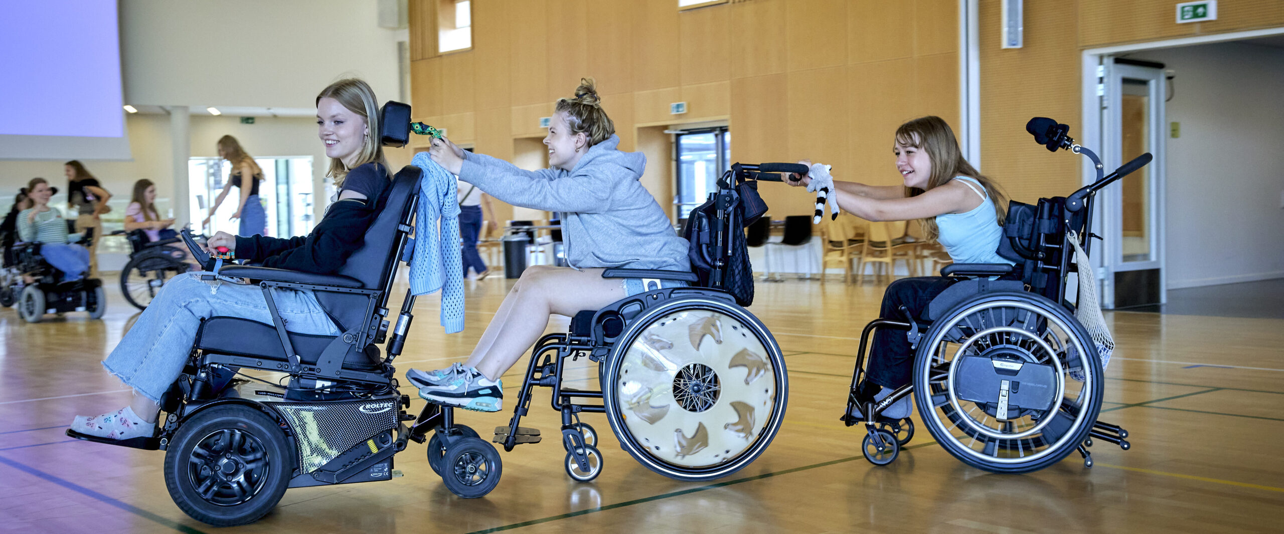 Gruppen mødes i en weekend på Musholm Ferie Sport Konference, hvor de både er sociale og har faglige input. Pigerne har ofte deres eget program med Muskelsvindfondens Muskelterer, som laver et program særligt til dem.