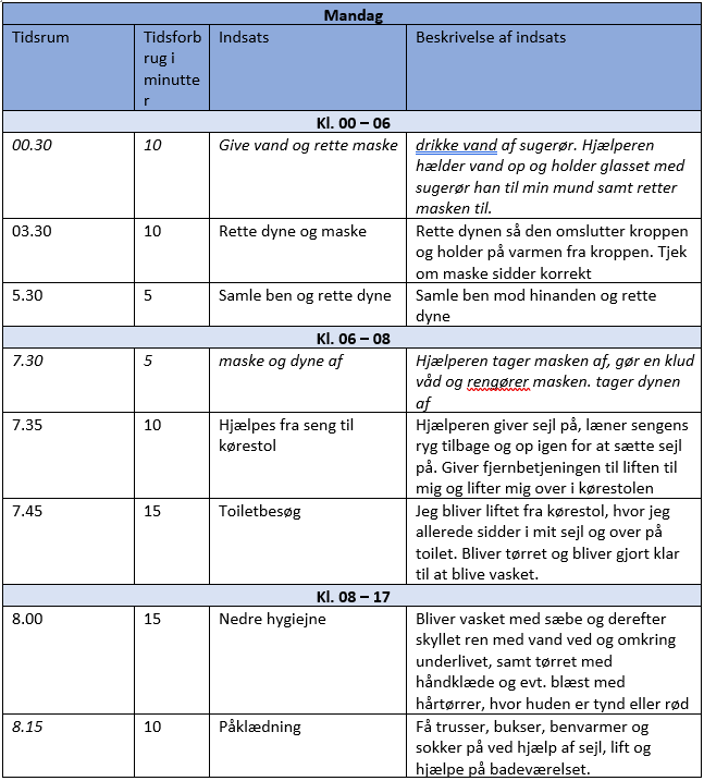 Hun blev bedt om stort set det samme for et år siden. Dengang kunne hun dog beskrive sine aktiviteter i løbet af en dag i lidt mindre detaljeret grad end det, kommunen nu kræver.