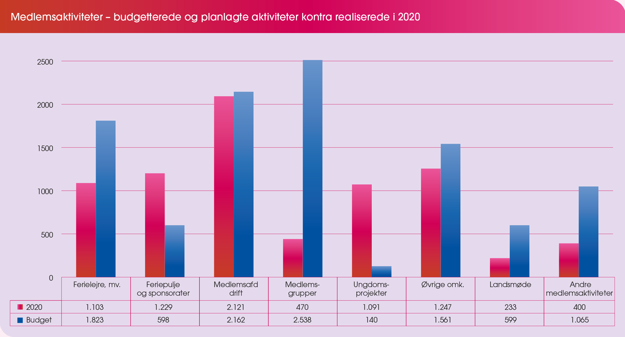 Aflyste medlemsaktiviteter blev konverteret til digitale møder og arrangementer, hvor vi inviterede politikere, relevante oplægsholdere, medlemmer og medarbejdere ind, så sammenholdet og fællesskabet blev styrket. I stedet for sommerens koncerter på Grøn opfandt vi sammen med en række samarbejdspartnere Grønnere Grøn, som blev en stor succes. Grønnere Grøn var dels 118 koncerter rundt om i landet på altaner, i haver og indkørsler med publikummer som værter. Dels digital streaming af udvalgte koncerter og et stort TV-show på TV2 med Anders Breinholdt som vært.