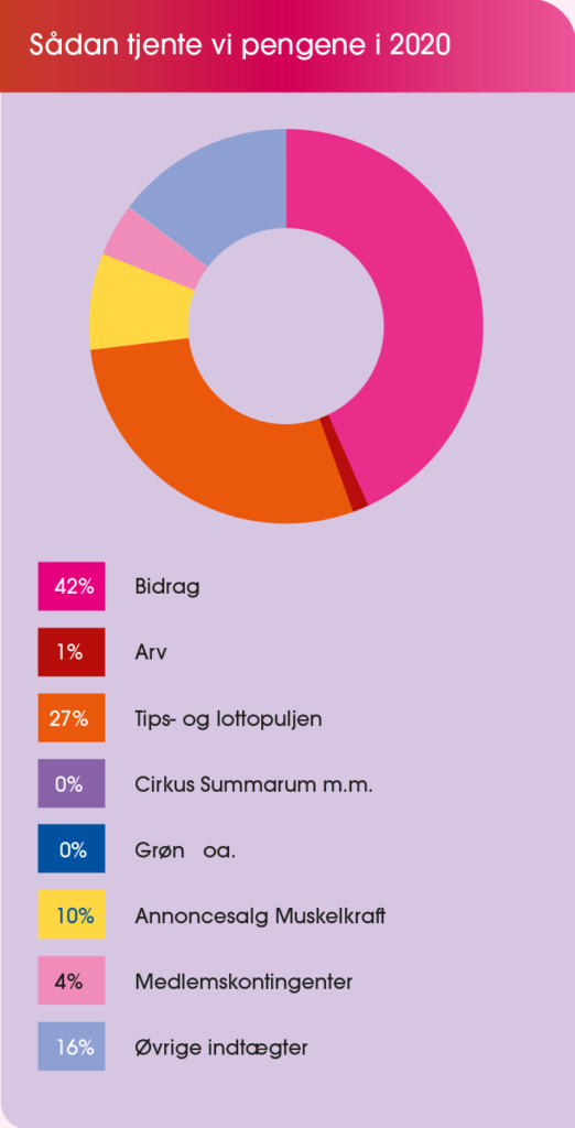 Der er ingen tvivl om, at en presset økonomi har sat dagsordenen for Muskelsvindfonden i 2020. Aflysningerne af Grøn og Cirkus Summarum har betydet, at der ikke kom nogen indtægter til foreningen. Normalt dækker arrangementerne ca. 80% af foreningens omsætning, så det kan mærkes på både den korte og mellemlange bane.